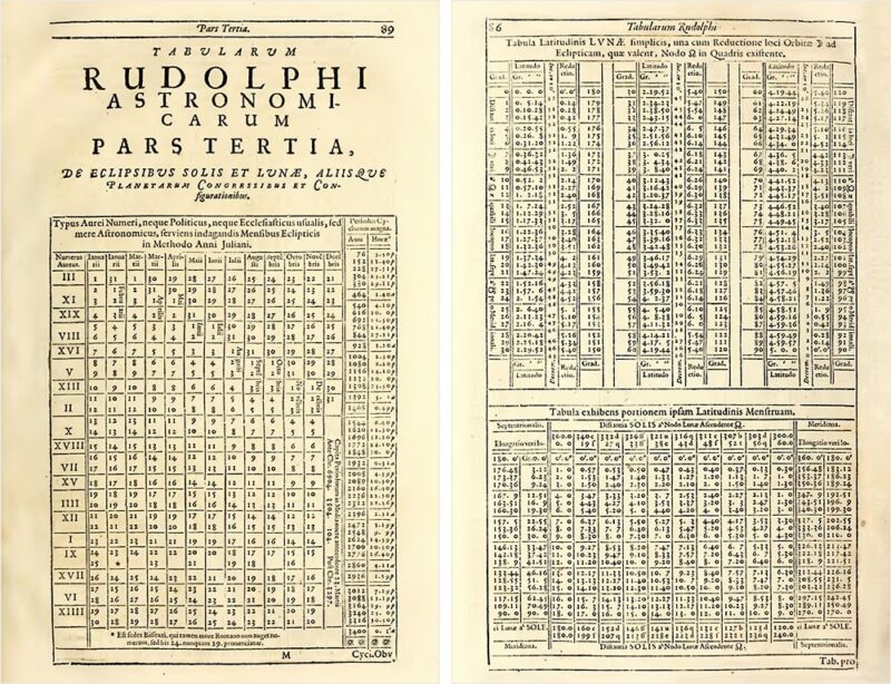 A pair of typical pages from the Rudolphine Tables, charting in this case eclipses of the Sun and Moon. (Public Domain)